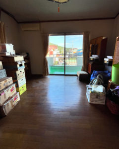 2階のこのベランダがあるお部屋は、いつのまにか物置みたいになっていました。実家あるあるですね。少し不用品を捨てましたが、行き場の決まらない荷物が片付きません。