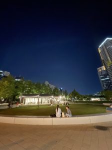 東遊園地でアイスコーヒー飲んで、ちょっとぼんやり。