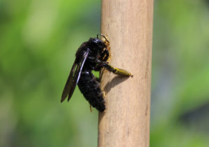 調べたら、タイワンタケクマバチという、竹に住んで子育てをするハチでした。