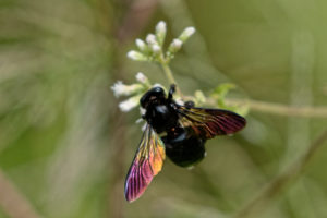 クマバチサイズなのに、あのかわいい黄色がなくて、全部真っ黒!