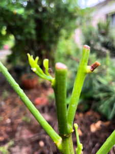 さすが、独立栄養生物です!私たちは、栄養的には完全に植物に依存していますが、生命力もその叡智にも完敗ですね。立派なアゲハチョウのサナギを育てた、まるで乳母のようなベルガモットも、これからがんばって再生してほしいですね。