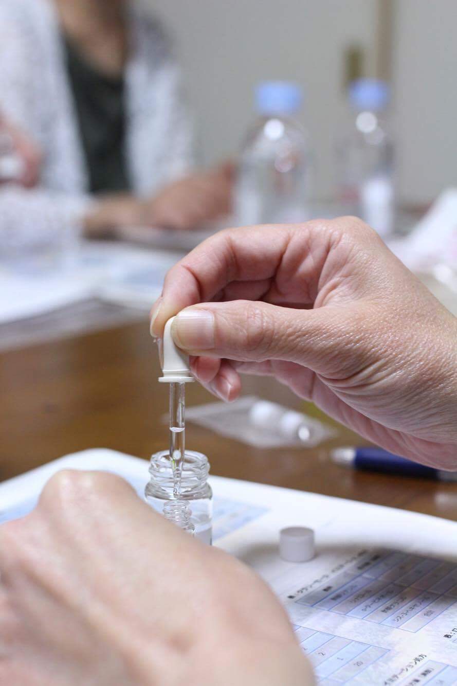 加えて実習では単体香料を組み合わせて既知の香りを作ります。